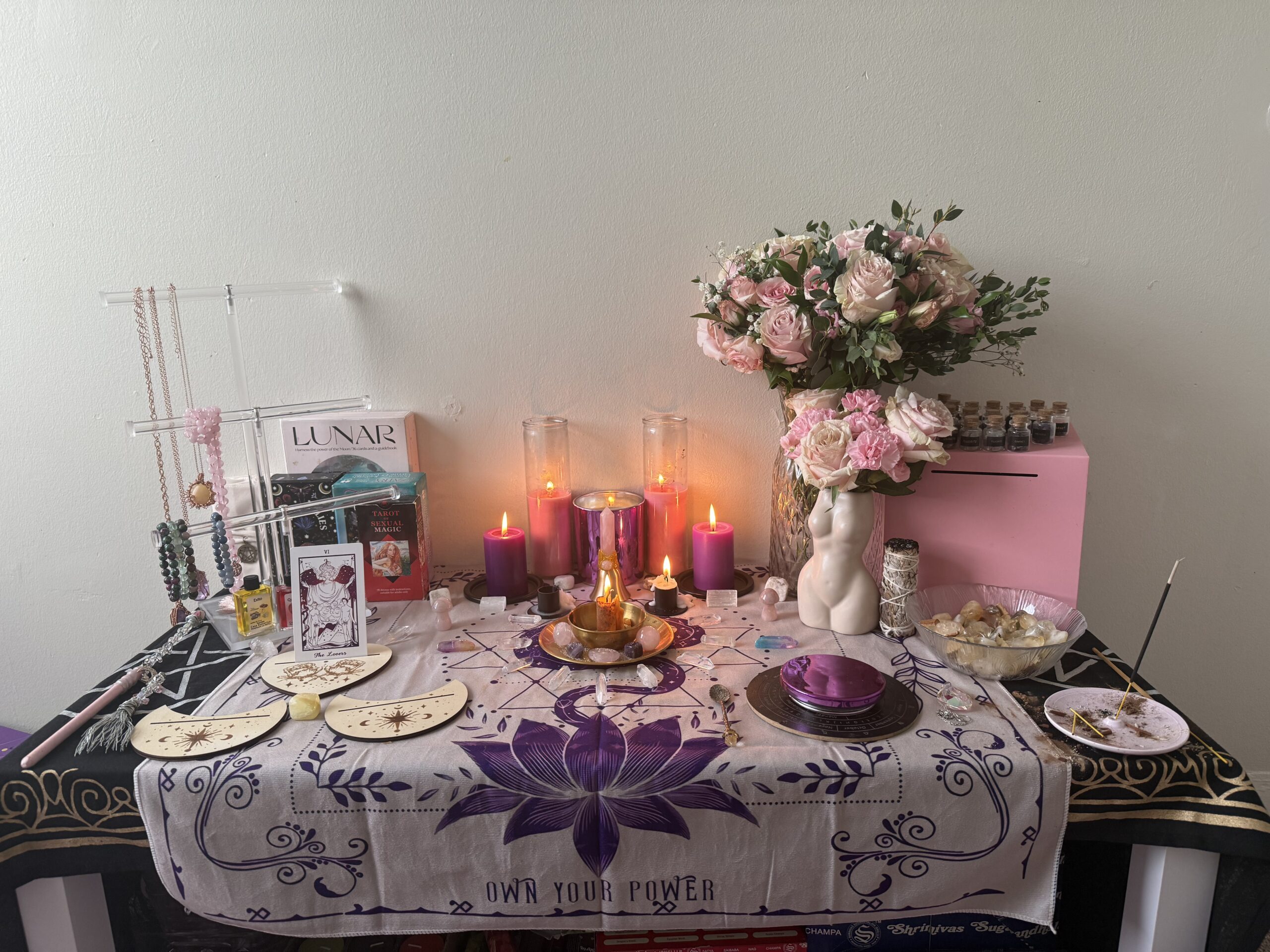 Enter a space where every creation carries intention and sacred energy. From shimmering crystal tools to spell jars, signature oils, and aromatic incense, each piece is made to elevate your rituals, ignite your power, and help you move through the world as the goddess you are.